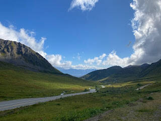 The day was memorable for several reasons, namely that I'd never seen (or heard) the valley as it was that day. All the recent heavy rains had the pass literally teeming with water. Stand still, and you could hear the sound of rushing water all around you - from one side of the valley to the other. All the small brooks and creeks were overflowing with white waves of bubbling liquid. The waterfalls were pouring over as well. And the big river down at the bottom had turned into a white water rapids that would give a healthy respect for anyone thinking about testing its limits.